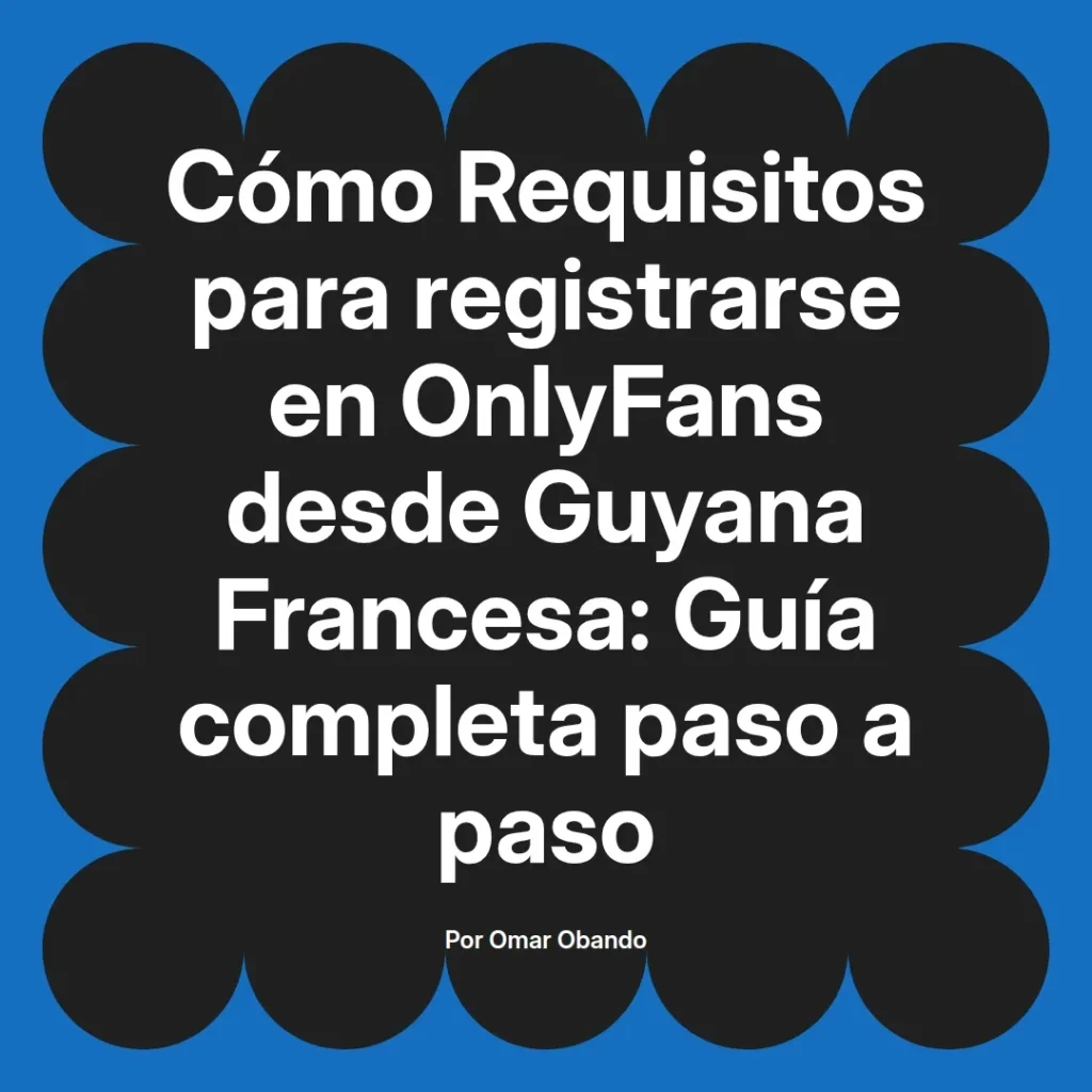 OnlyFans es una plataforma de contenido en línea que permite a los creadores monetizar su trabajo a través de suscripciones. En Guyana Francesa, cada vez más personas buscan registrarse en esta plataforma para compartir su creatividad y generar ingresos. Sin embargo, el proceso de registro puede resultar confuso para algunos. Este artículo detalla los requisitos necesarios para registrarse en OnlyFans desde Guyana Francesa, proporcionando una guía clara y útil para facilitar este proceso. Al seguir estos pasos, podrás unirte a la comunidad de creadores y aprovechar las oportunidades que ofrece esta innovadora plataforma.